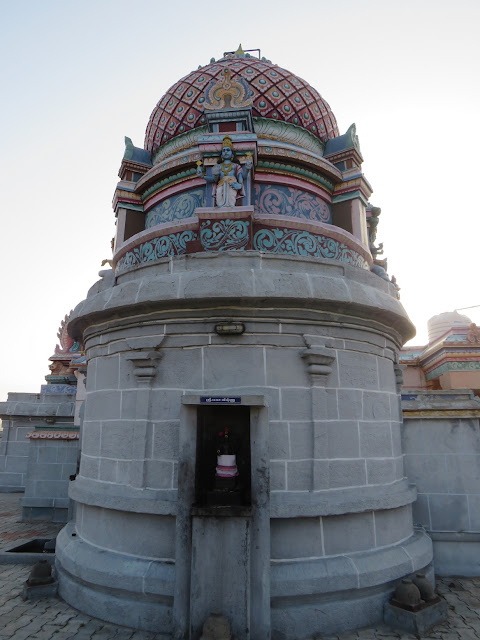 The moderately sized temple has two entrances. The temple tank is found in front of the east entrance. The southside entrance is used as the central doorway.